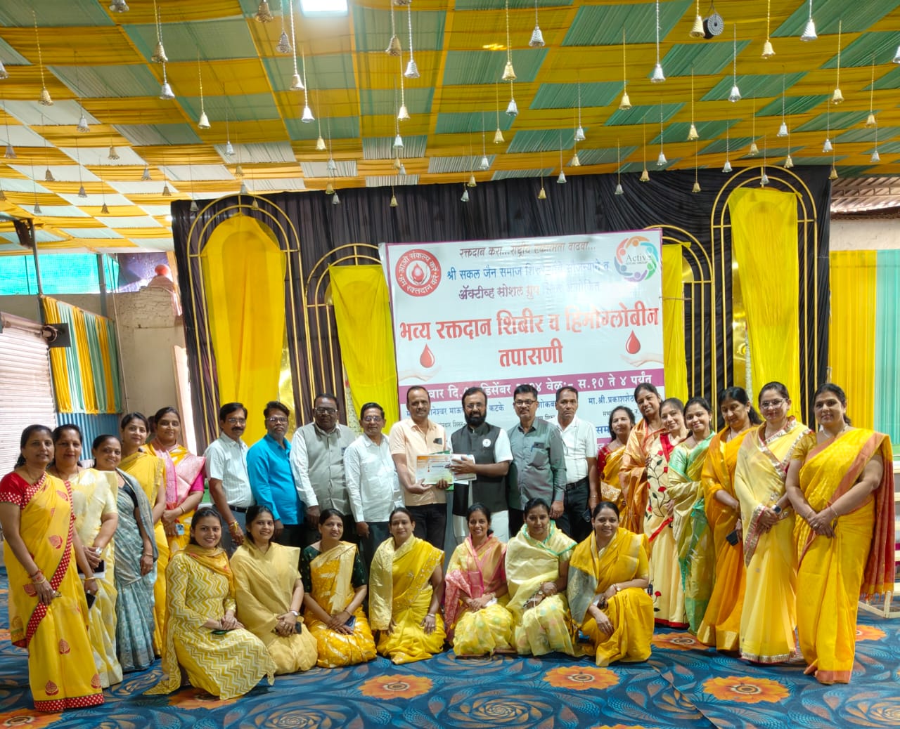 शिबीर यशस्वी करण्यासाठी ॲक्टिव सोशल ग्रुपचा अध्यक्षा कामिनी बाफना, सुनीता बिहाणी, मंगल संचेती,राणी बोथरा, मनीषा नहार, राखी बोथरा, वंदना भंडारी, रेशया भंडारी, भाग्यश्री शिंगवी, समीक्षा बाफना, सपना बोरा, प्रीती बोरा, मेघा भळगट,रुचीरी बोरा, प्रिया गुंदेचा, अनिता कोठारी, डॉ. सारिका बोरा, संदीप बिहाणी, प्रकाश बाफना, कपिल बोरा, राहुल बोथरा, प्रशांत संचेती, मुन्ना चोरडिया, विकास सुराणा,रुपाली बोरा , रुपाली कर्नावट ,निलम बोथरा आदींनी विशेष प्रयत्न केले. फोटो ॲक्टीव्ह गृपच्या वतिने आयोजीत केलेल्या रक्तदान शिबीरात सहभागी झालेले रक्तदाते व मान्यवर
