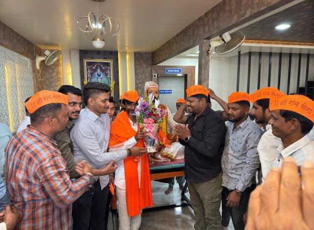 शिरुर येथे मनोज जरांगे पाटील यांचा श्रीराम सेने तर्फे सत्कार
