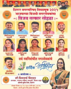 शिरूर नगरपरिषद निवडणुकीत भारतीय जनता पक्षाच्या वतीने निवडून आलेल्या नवनिर्वाचित नगरसेवकांच्या सत्कार ओन्ली जिम शिरूर व भारतीय जनता पक्षाच्या महिला आघाडीच्या अध्यक्षा प्रिया बिरादार यांच्या वतीने करण्यात आला होता शिरूर नगरपरिषद निवडणूकीमध्ये भाजप पक्षाचे निवडणून आलेल्या नवनिर्वाचित नगरसेवक व नगरसेविकाचा शिरूर शहर भाजप महिला आघाडी व ओन्ली वुमन जिमच्या वतीने सत्कार करण्यात आला यावेळी प्रास्ताविक करताना भाजप महिला आघाडीच्या शिरूर शहराध्यक्षा प्रिया बिरादार म्हणाल्या की मतदारांनी दाखवलेल्या विश्वासाला तडा जाऊ न देता उत्तम प्रकारे आपण प्रत्येक प्रभागातील कामे करावीत तसेच हा सत्कार संभारंभ नसून विजयाचा शपथ विधीच आहे